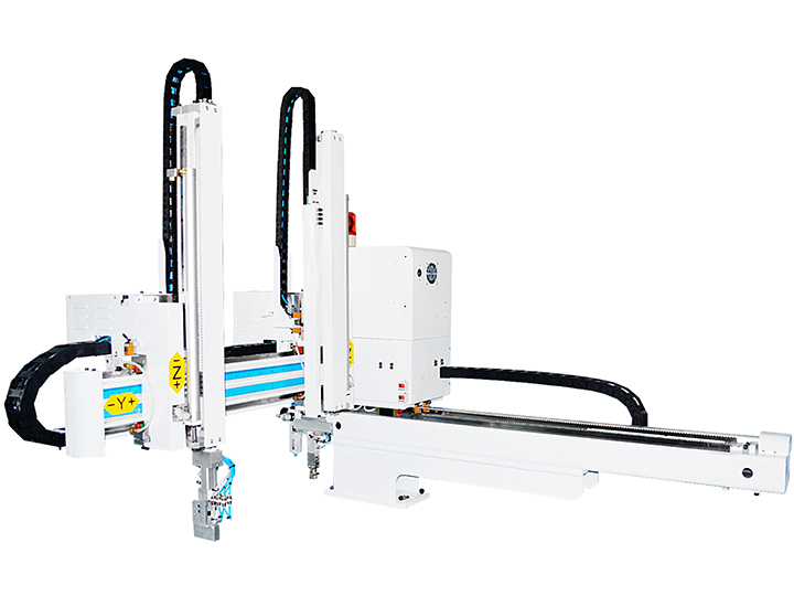 · the body structure is rigid, and the upper and lower parts are driven by cylinders. High precision linear slide rail is adopted for horizontal and upper and lower shafts, which can bear high load and high speed operation and have long service life.